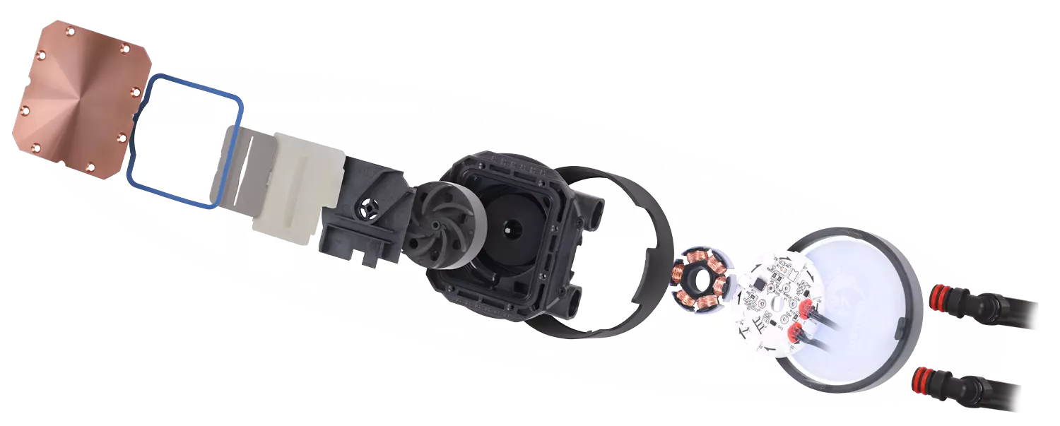 در نسل جدید خنک کننده های آبی سری GLACIER ECO ARGB گرین از واترپمپ با قدرتی معادل دو برابر خنک کننده های آبی نسل اول و دوم گرین استفاده شده است. علاوه بر این به سبب بهره گیری از یاتاقان های در کلاس صنعتی از نوع Copper Bearing دوام و پایداری این سری به طرز قابل توجهی ارتقاء یافته است. همچنین فرآیند ساخت بسیار دقیق، آب بندی چند مرحله ای اتصالات و کنترل کیفیت چند لایه در ساخت واتربلاک این سری، ضریب امنیت و کیفیت عملکرد آن را حتی در بدترین شرایط ممکن نیز تضمین می کند.