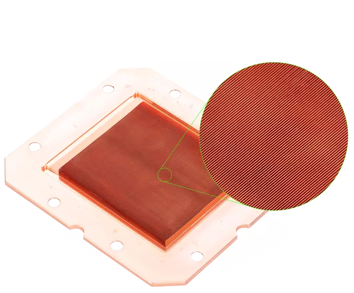 برای این خنک کننده بلاک مسی با خلوص بسیار بالا و ابعاد 55.5mm x 61mm مستطیل در نظر گرفته شده است. راندمان بسیار بالا در جذب حرارت و سازگارای با IHS بزرگتر پردازنده های مدرن و جدید موجود در بازار به سبب ابعاد گسترده از دیگر ویژگی های ممتاز این خنک کننده آبی محسوب می شود.