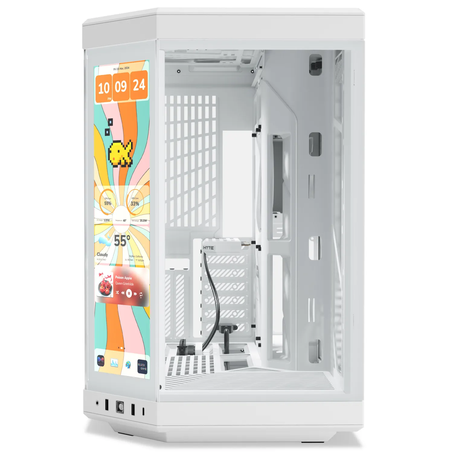 از نظر سختافزاری، Y70 Touch Infinite از مادربردهای E-ATX، ATX، Micro-ATX و Mini-ITX پشتیبانی میکند و فضای کافی برای نصب کارتهای گرافیک تا طول 422 میلیمتر و خنککنندههای CPU تا ارتفاع 180 میلیمتر را فراهم میسازد. همچنین، امکان نصب رادیاتورهای آبی تا اندازه 360 میلیمتر در بخشهای بالا و کناری کیس وجود دارد. با پشتیبانی از نصب عمودی کارت گرافیک و کابل رایزر PCIe 4.0 x16 همراه، این کیس برای نمایش کامل قطعات داخلی ایدهآل است. پورتهای I/O شامل دو USB 3.2 Gen1، یک USB-C 3.2 Gen2 و جک ترکیبی صدا/میکروفون است. فیلترهای گردوغبار در بخشهای بالا، کناری و پایین کیس نیز به حفظ تمیزی داخلی کمک میکنند.