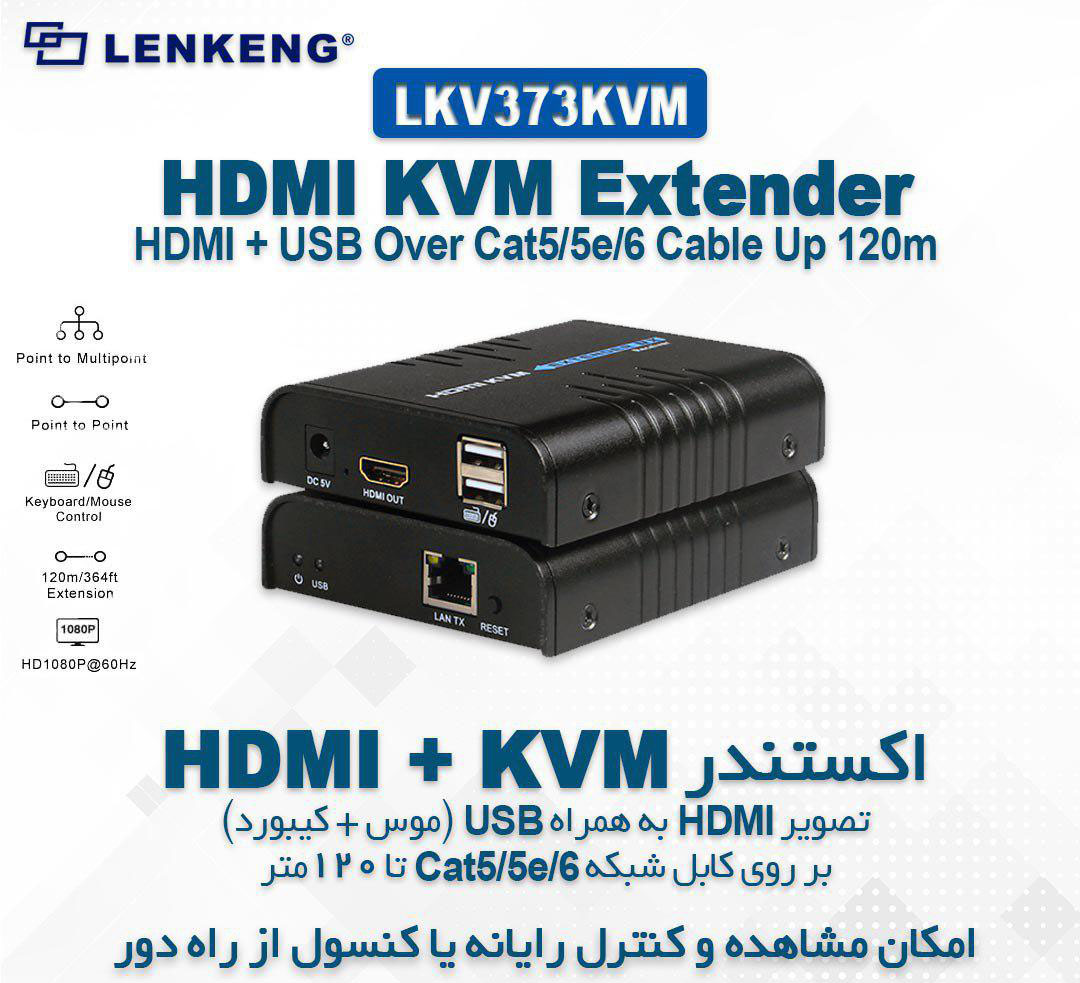 مدل LKV373KVM از سری انتقالدهندههای (اکستندر) KVM کمپانی Lenkeng است که علاوه برافزایش فاصله انتقال تصویر منبع HDMI، سیگنال موس و صفحهکلید را بر روی کابل شبکه انتقال میدهد.
