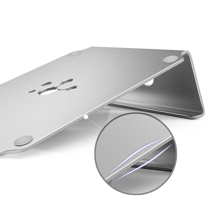 و اما به لحاظ جنس ساخت با محصولی از آلیاژ آلومینیوم طرف هستیم که با تکنولوژی آنودایز آلومینیوم با شن و ماسه و نقره ساخته شده است و بسیار مستحکم و مقاوم است. همینطور وقتی لپ تاپ یا تبلت بر روی آن گذاشته می شود، به واسطه پد های مخصوصی که در چهارگوشه آن تعبیه شده، محکم است و نمی لغزند. همچنین اطراف شیارهای آن با پوشش لاستیکی محافظت شده تا مانع خراشیدگی و آسیب به دستگاه شما گردد. با اینحال این محصول پایه نگهدارنده، مناسب استفاده برای لپ تاپ و تبلت های 11 الی 15.6 اینچ است و تا 5 کیلوگرم وزن را نیز تحمل می کند.