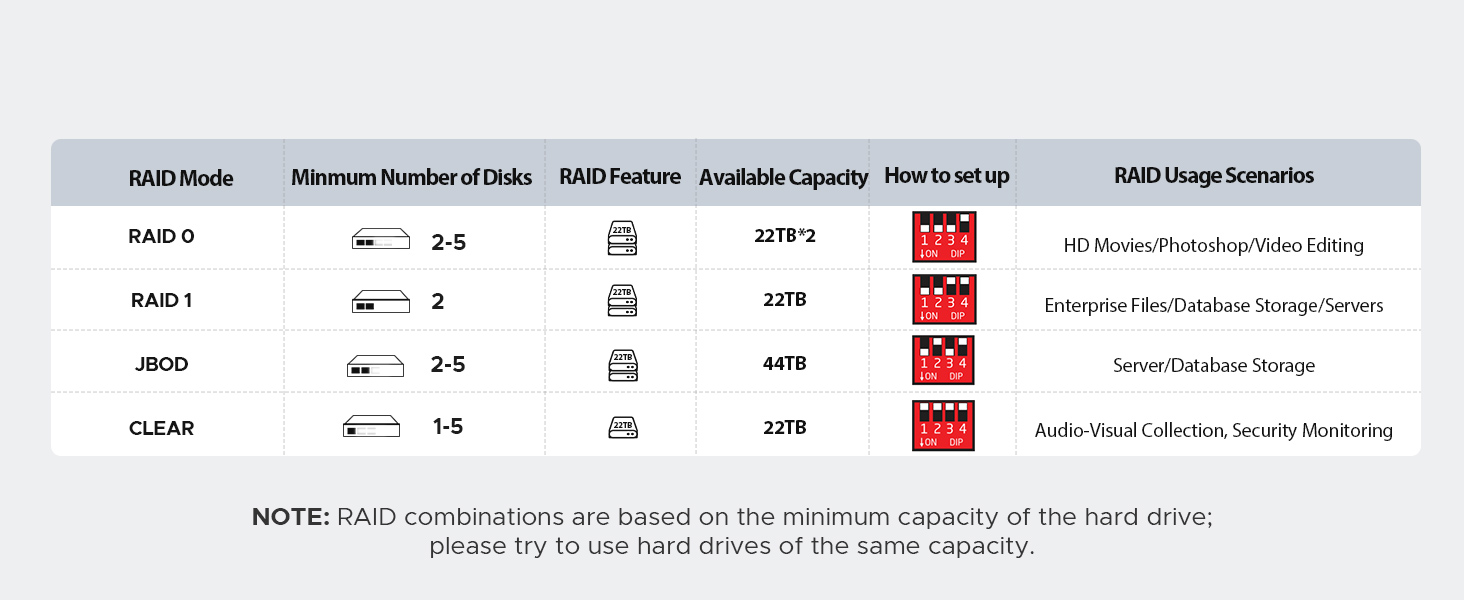 این محصول با پشتیبانی از RAID 0، RAID 1، JBOD و CLEAR MODE، امکانات متعددی را برای مدیریت دادهها ارائه میدهد: