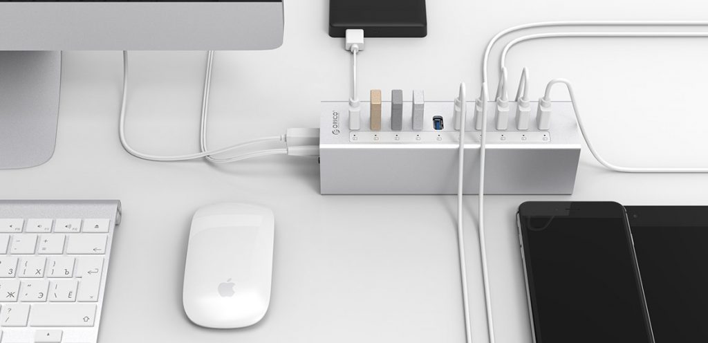هاب 10 پورت USB 3.0 آلومینیومیبا آداپتور ORICO A3H10-V2 نیاز شما به 10 پورت را برطرف میسازد و شما میتوانید براحتی Ultrabook و تبلت خود را به آن وصل کنید.