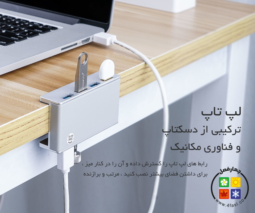 رابط های لپ تاپ را گسترش داده و هاب 4 پورت USB 3.0 فلزی را در کنار میز قرار داده و بعد از خرید هاب usb برای داشتن فضای بیشتر نصب کنید ، مرتب و برازنده
