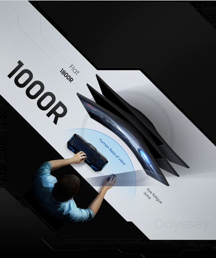 با پنل منحنی 1000R سری Odyssey می توانید زاویه دید خود را پوشش دهید و از حداکثر غوطه ور شدن و کمترین فشار به چشم جلوگیری کنید.