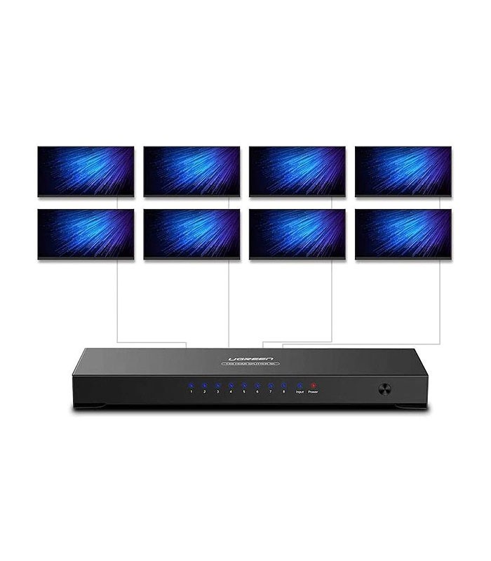 با اسپلیتر 8 پورت HDMI با قابلیت 3D از Ugreen، از تماشای ویدیوها، فیلمها و بازیها با کیفیت و راحتی بیشتر لذت ببرید و تجربهی تماشای چند دستگاه به صورت همزمان را تجربه کنید.